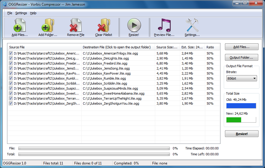 OGGResizer Screenshot: